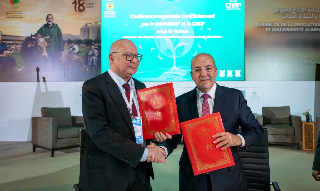وقّعت وزارة الفلاحة والصيد البحري والتنمية القروية والمياه والغابات، واللجنة الوطنية لمراقبة حماية المعطيات ذات الطابع الشخصي، يوم الأربعاء 22 أبريل 2026، على هامش الملتقى الدولي للفلاحة بمكناس، اتفاقية تُتوّج انضمام الوزارة إلى برنامج «DATA-TIKA».